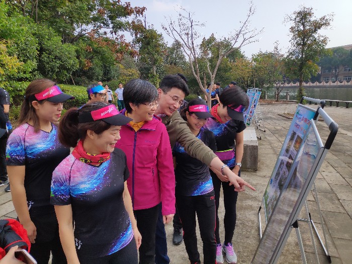 开幕式结束后,由飞鱼跑团团长举旗引路,带领大家开始院内健走活动,与其他浩浩荡荡的健走队伍会合。在健走行程中,职工们饶有兴致地观赏了迎战三甲期间的工作照片以及医院各俱乐部精彩纷呈的活动照片。