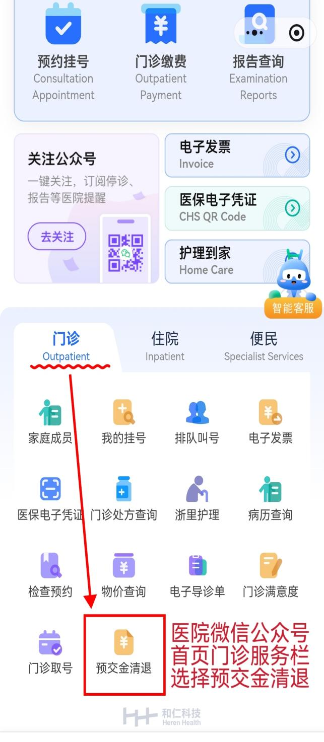 线上清退:通过"绍兴市人民医院"微信小程序可自助办理预交金清退