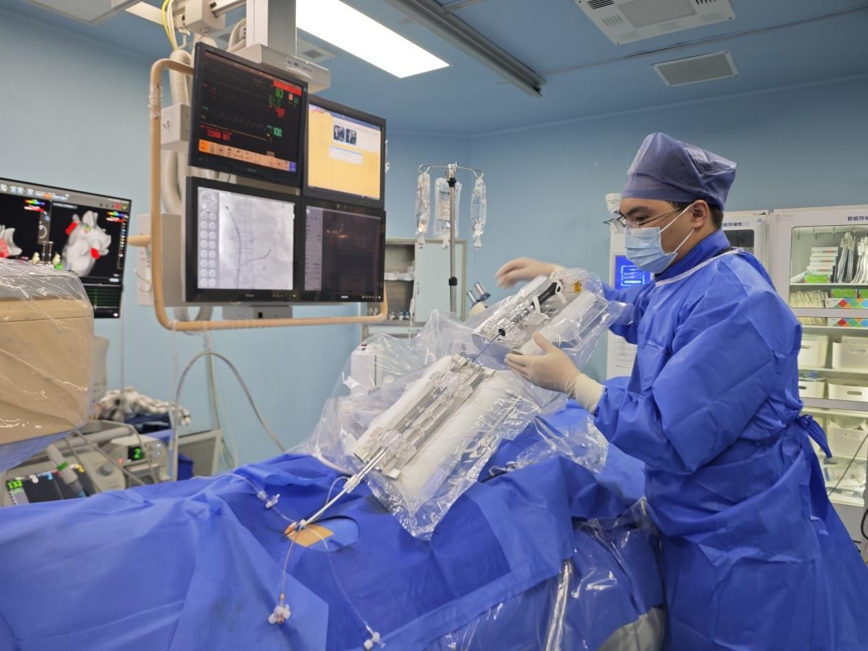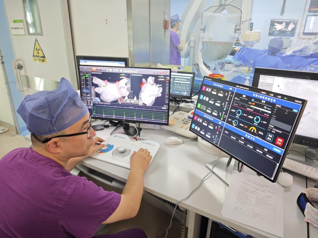 当天,绍兴市人民医院心血管内科常栋团队成功应用全球首款上市房颤手术机器人,完成首例房颤导管消融手术。常栋团队依托该先进设备与技术,高效完成三台不同类型房颤消融手术,其中包括两台阵发性房颤手术与一台持续性房颤手术。三台手术均顺利完成,目前患者术后情况稳定,手术疗效得到验证。这不仅标志着医院在心脏介入诊疗领域迈出历史性一步,更彰显了医院紧跟医疗前沿、引领技术革新,将人工智能深度融入临床实践的决心与实力。