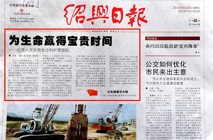 【绍兴日报】为生命赢得宝贵时间——记市人民医院急诊科护理团队