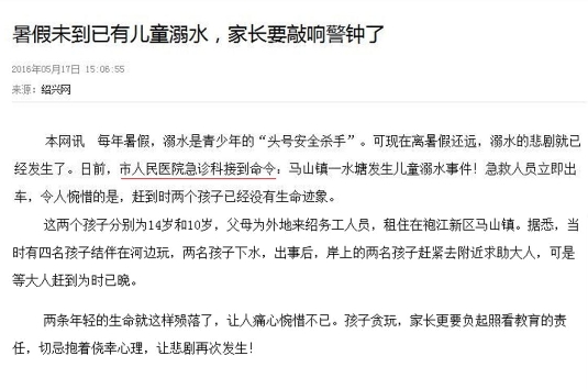 【绍兴网】暑假未到已有儿童溺水,家长要敲响警钟了